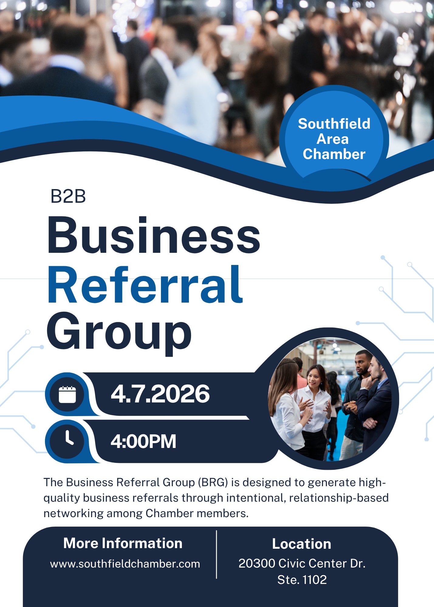 The Southfield Area Chamber of Commerce is excited to introduce our Business Referral Group (BRG)—a dynamic opportunity designed to help you grow your business with intention.