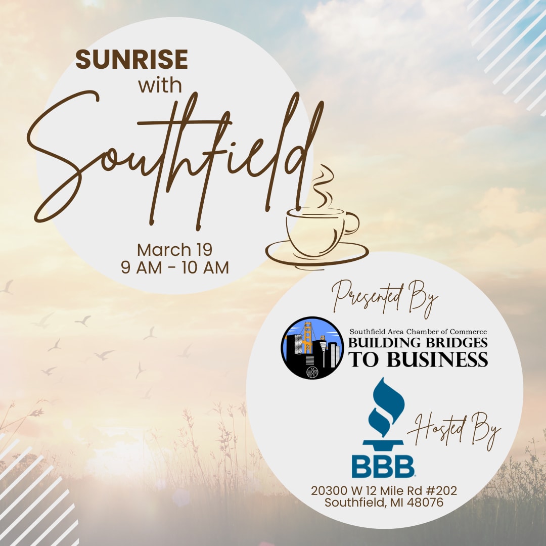 Join us for this networking event with the Better Business Bureau (BBB). BBB Accredited Businesses and Southfield Chamber of Commerce members are invited to attend. This event is open to the public. Share your business pitch including a newsworthy item in 30-60 seconds before the timer runs out. Remember to bring your business cards!
